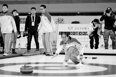 华北电力大学附属中学学生在“水立方”内体验冰壶赛道。 新华社发